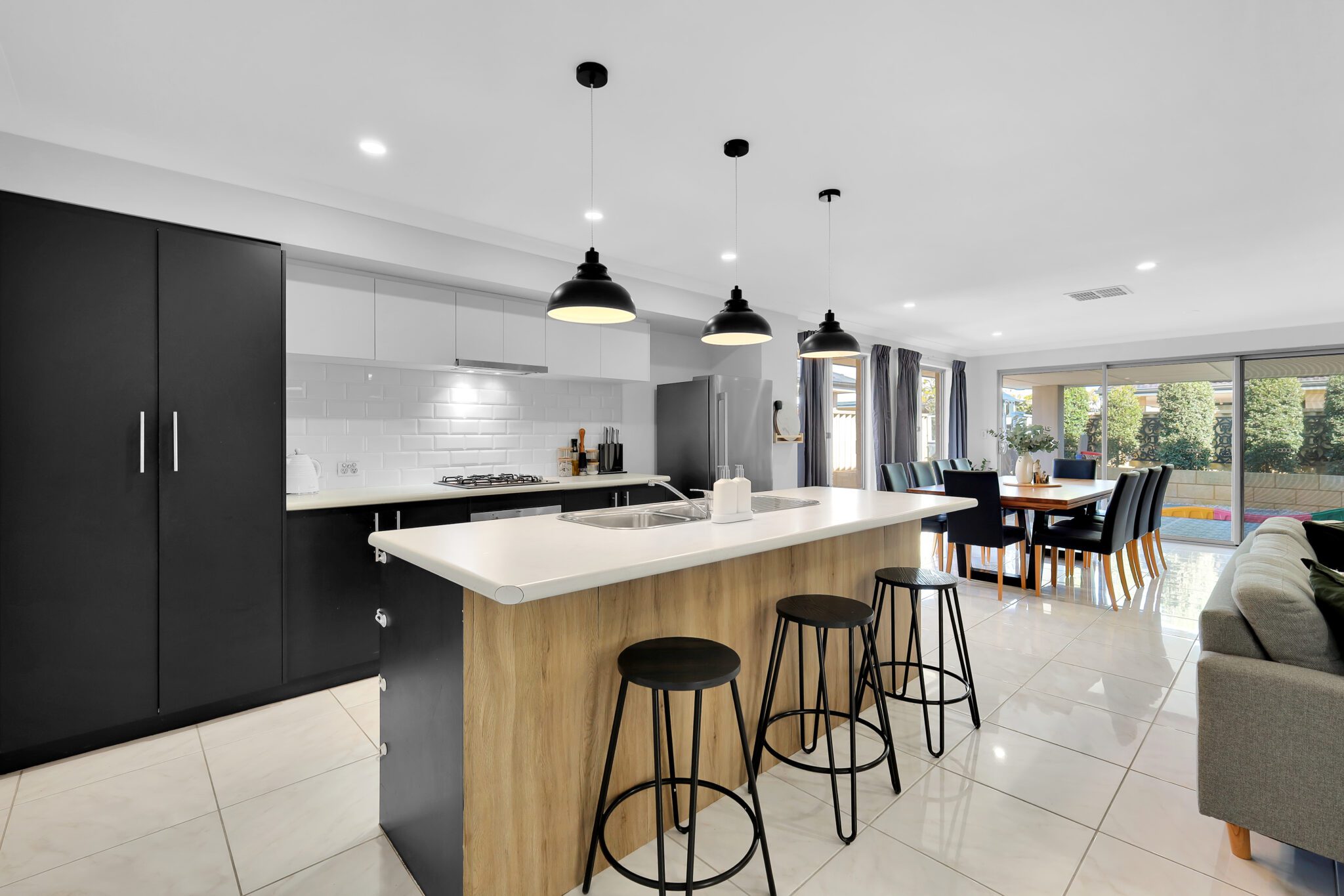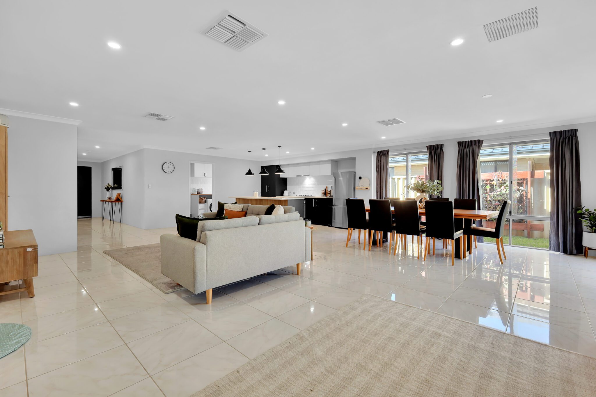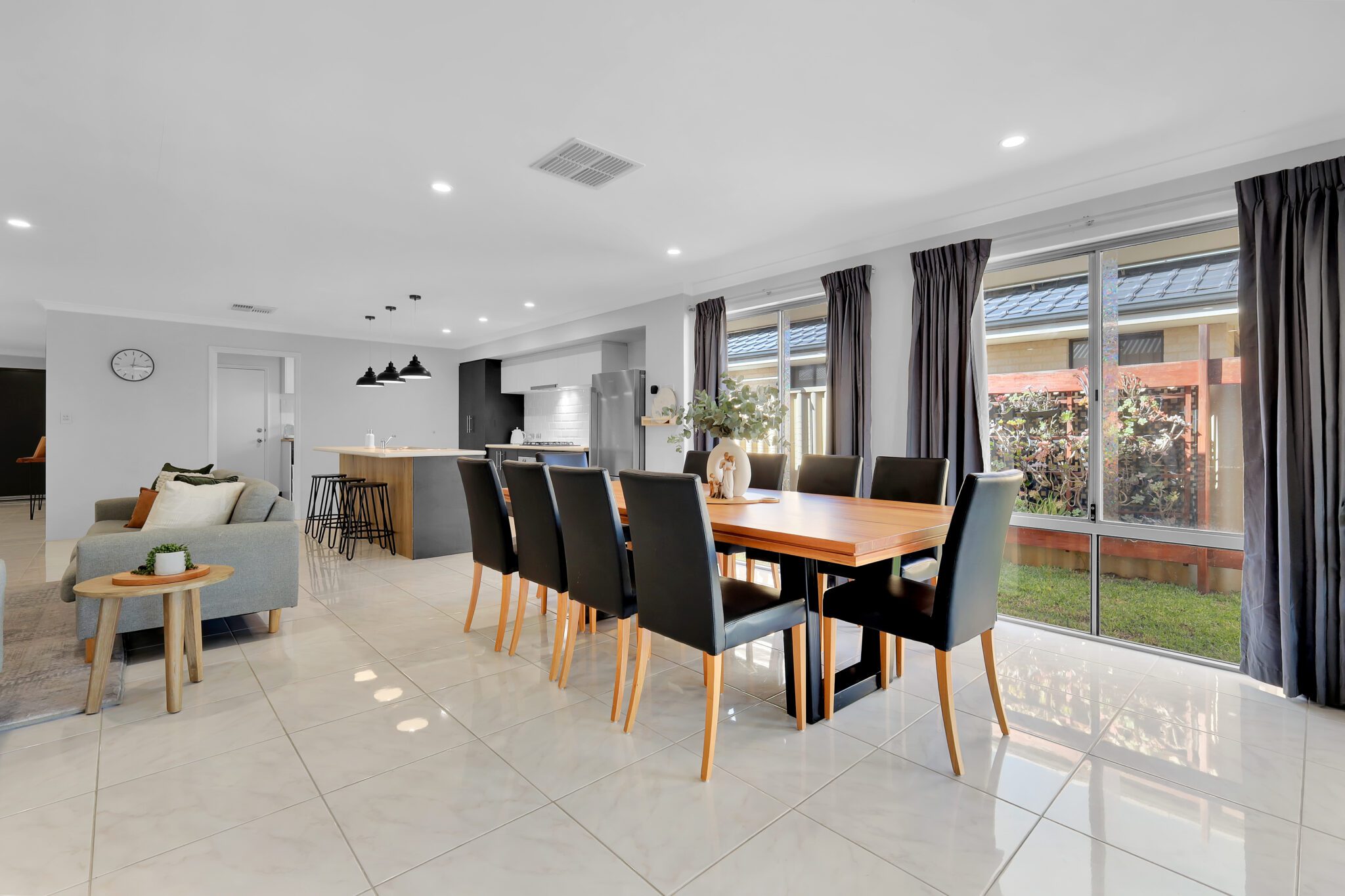 This very spacious open-plan living and dining area, and the light-filled kitchen, are the central hub of the home. Designed for seamless indoor-outdoor living, this expansive space flows effortlessly out to the alfresco and is ideal for both day-to-day living and entertaining guests.