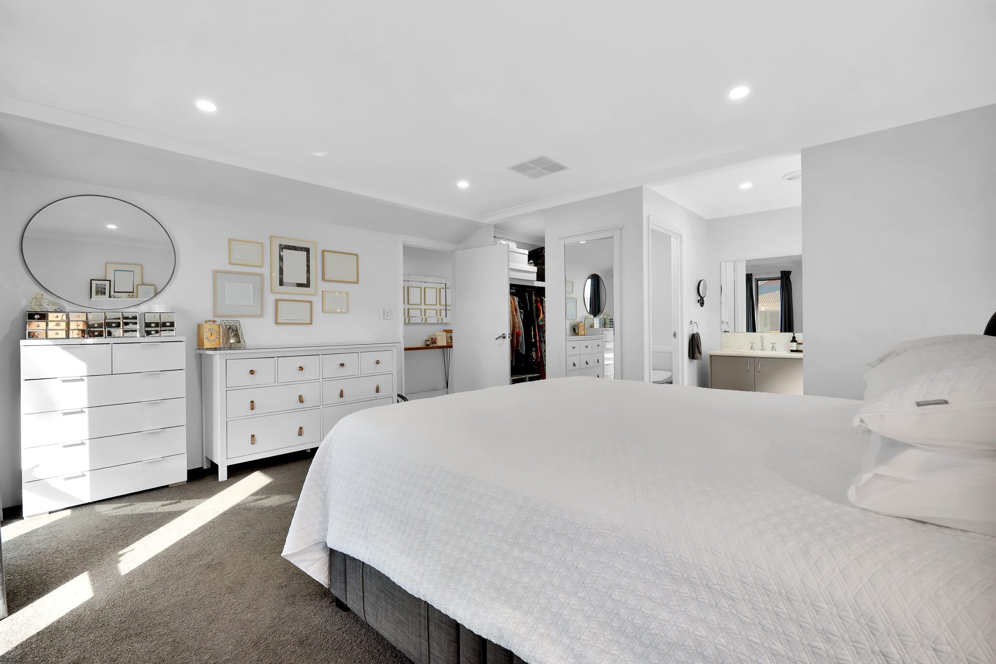 • Private master suite at the front with a large walk-in robe and a modern ensuite
