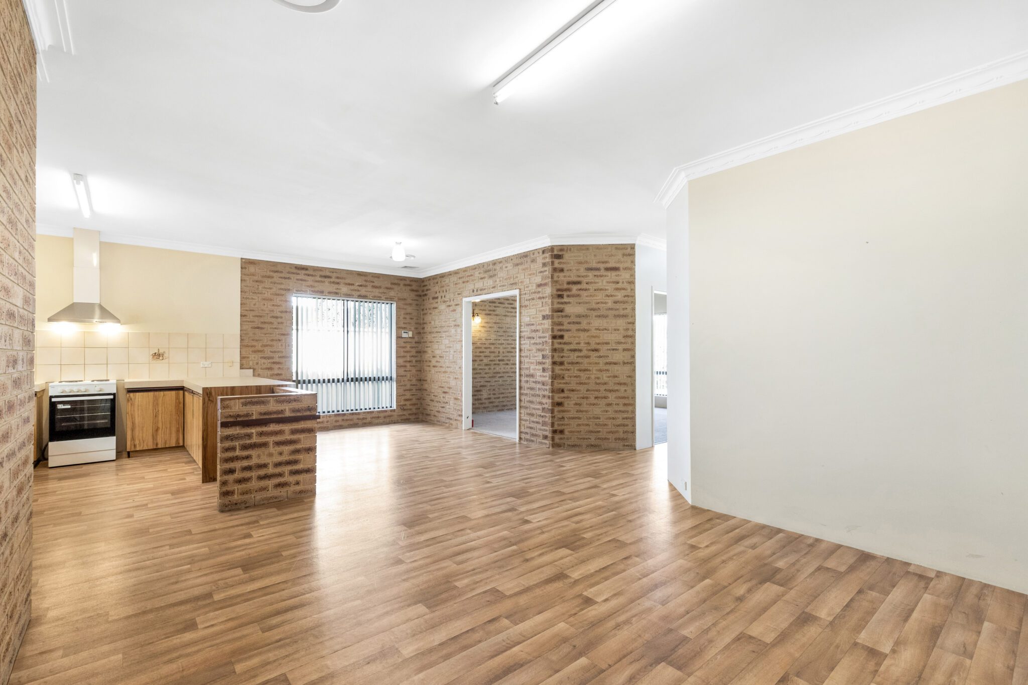 * Open plan kitchen with plenty of bench and cupboard space